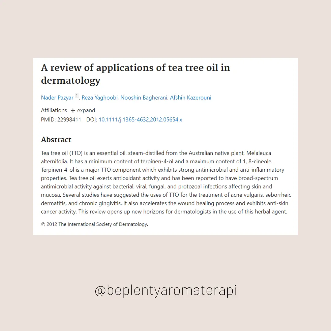 Beplenty Academy köşesinde bugün bahseceğimiz, herkesin ismini her zaman duyduğu #teatree 👩🏻🏫Aşağıdaki İlk çalışmada ; Çay ağacı uçucu yağının sabunlarda hijyen sağlama açısından incelendiğinde antimikrobiyal etki gösterip, cilde hoş aroma vererek kuru olmamasını sağladığı gösterilmiştir.Diğer çalışmadaysa, Çay ağacı yağının antioksidan, antimikrobiyal aktiviteye sahip olduğu, yara iyileşme sürecini hızlandırdığı, cilt sağlığı üzerinde etkili bir bitkisel ajan olduğu bildirilmiştir.📕 #çayağacı elimizin altında bulunması gereken önemli uçucu yağlar arasında.Bu etkilerini göz önüne alarak; Evinizde sıvı sabunlarınıza bir kaç damlatarak kullanılabilir, ekstra cilt bakımında sivilce, akne gibi durumlarda da bir pamuk yardımıyla uygulayabilirsiniz. 🌿
